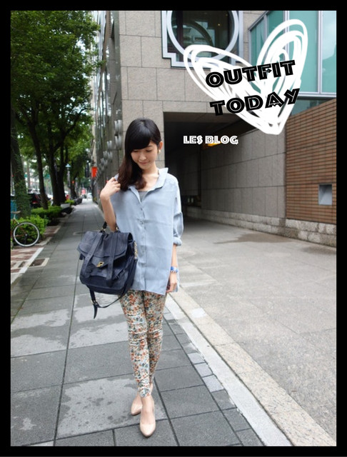 今天用淺灰藍色的襯衫搭配淺藍基底的色褲, 這是最基本的色調搭配法唷