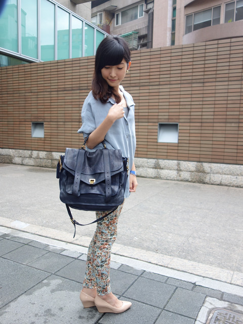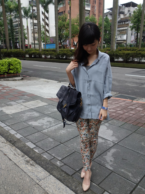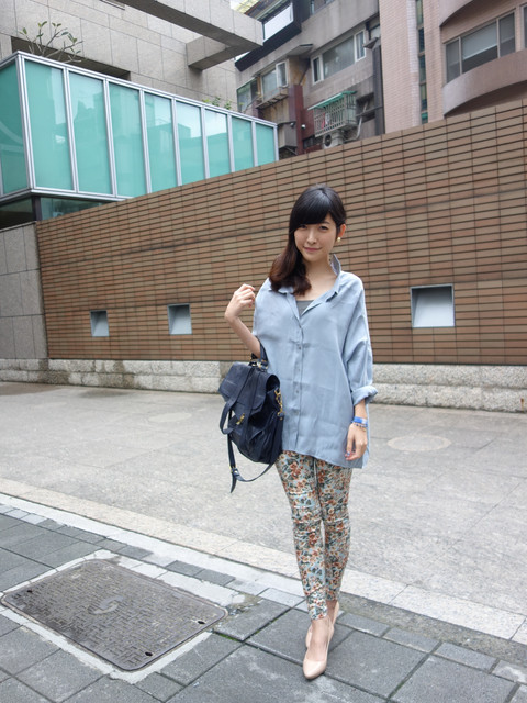 同樣都是藍色系, 覺得已經有花褲了就不想要身上其他東西擁有太多雜七雜八的顏色~