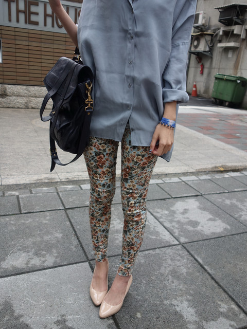 今天穿的是比較複古感的花褲, 這件褲頭是鬆緊帶, 但是是比較硬的材質, 所以看起來比較像褲子而不是legging