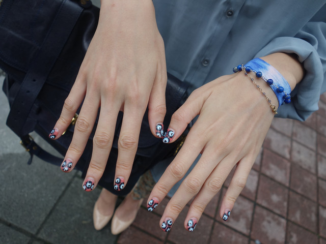 指甲是新光療粉紅色的豹紋唷, 遠看也像小花, 或是很多很多的眼睛 ((哈哈