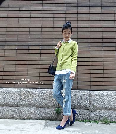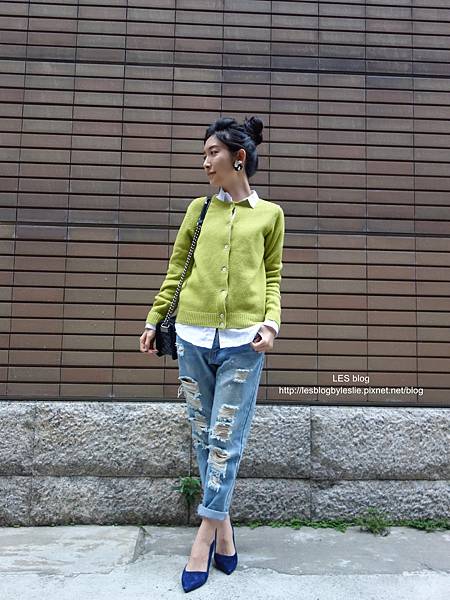 但是配上襯衫瞬間有一種就讀貴族學校好女孩的感覺, 我這天是搭上抓破男友褲綜合掉乖孩子的氛圍